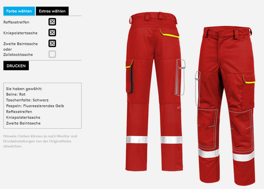 Gerne konfigurieren wir mit Ihnen zusammen Ihre individuelle Arbeitsbekleidung. Der Konfigurator ist einfach zu bedienen. Wir beraten Sie neben der Bekleidung auch in allen Themen rund um den Arbeitsschutz und Arbeitssicherheit. Sprechen Sie uns an, unsere Spezialisten sind gerne für Sie da.